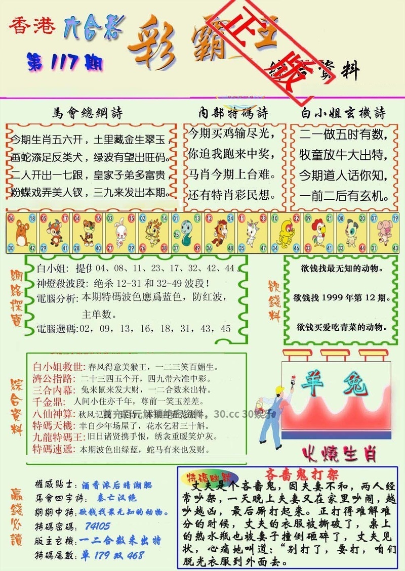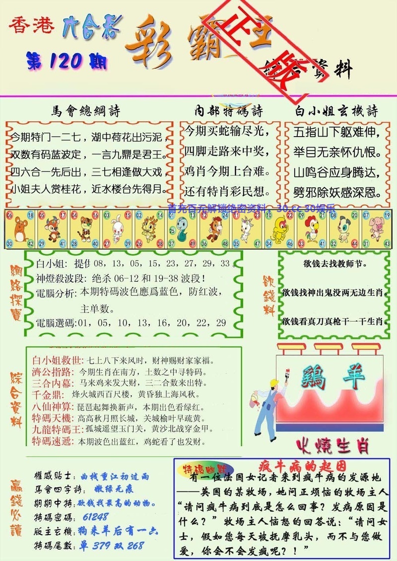 | 122期:☀平特三肖☀♠【鸡+虎+羊】♠ |