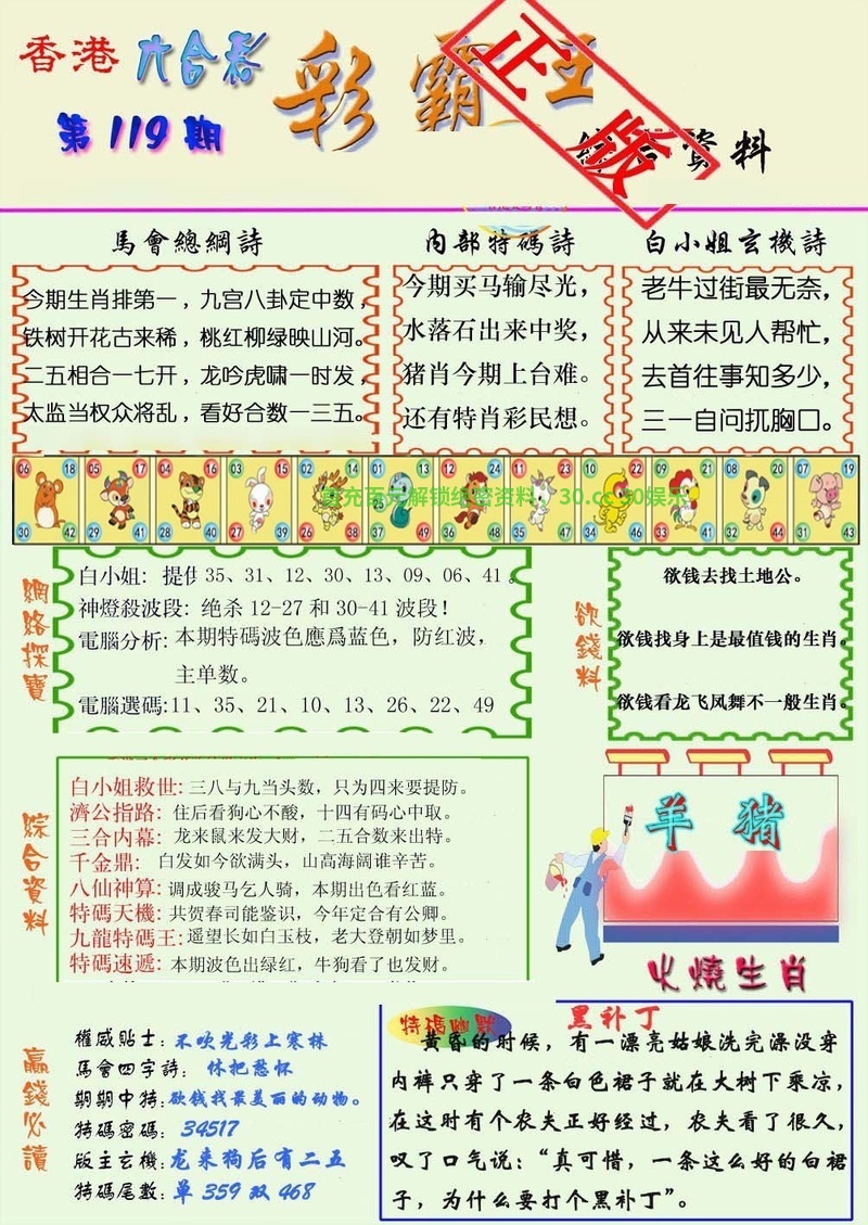 | 119期:☀平特三肖☀♠【龙+虎+羊】♠ |